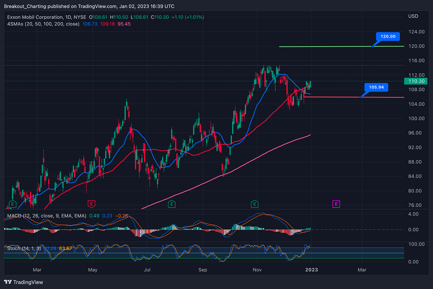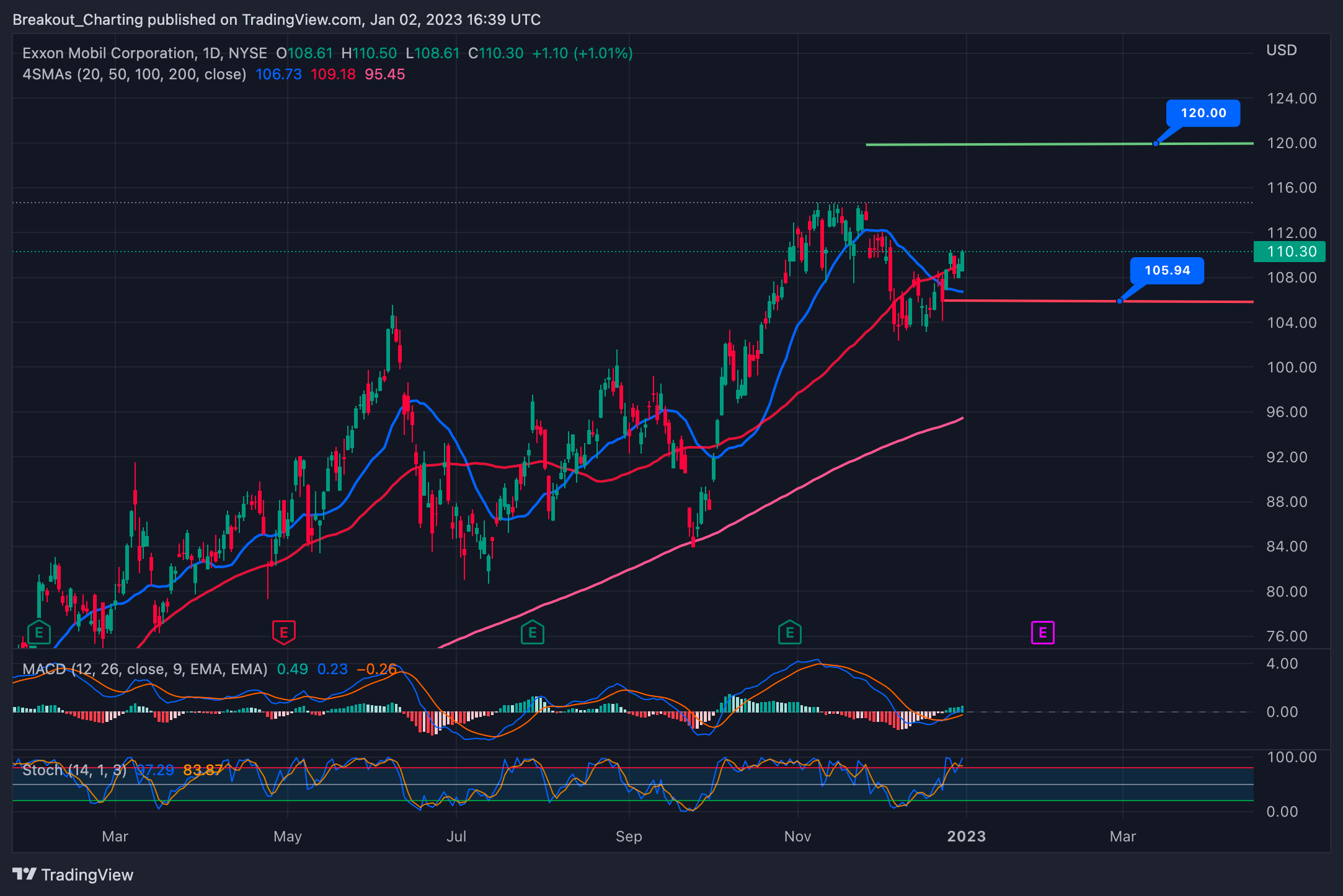 XOM - Exxon Mobile: Good momentum and trend indicators. Target: 120 Stop-Loss: 105.94