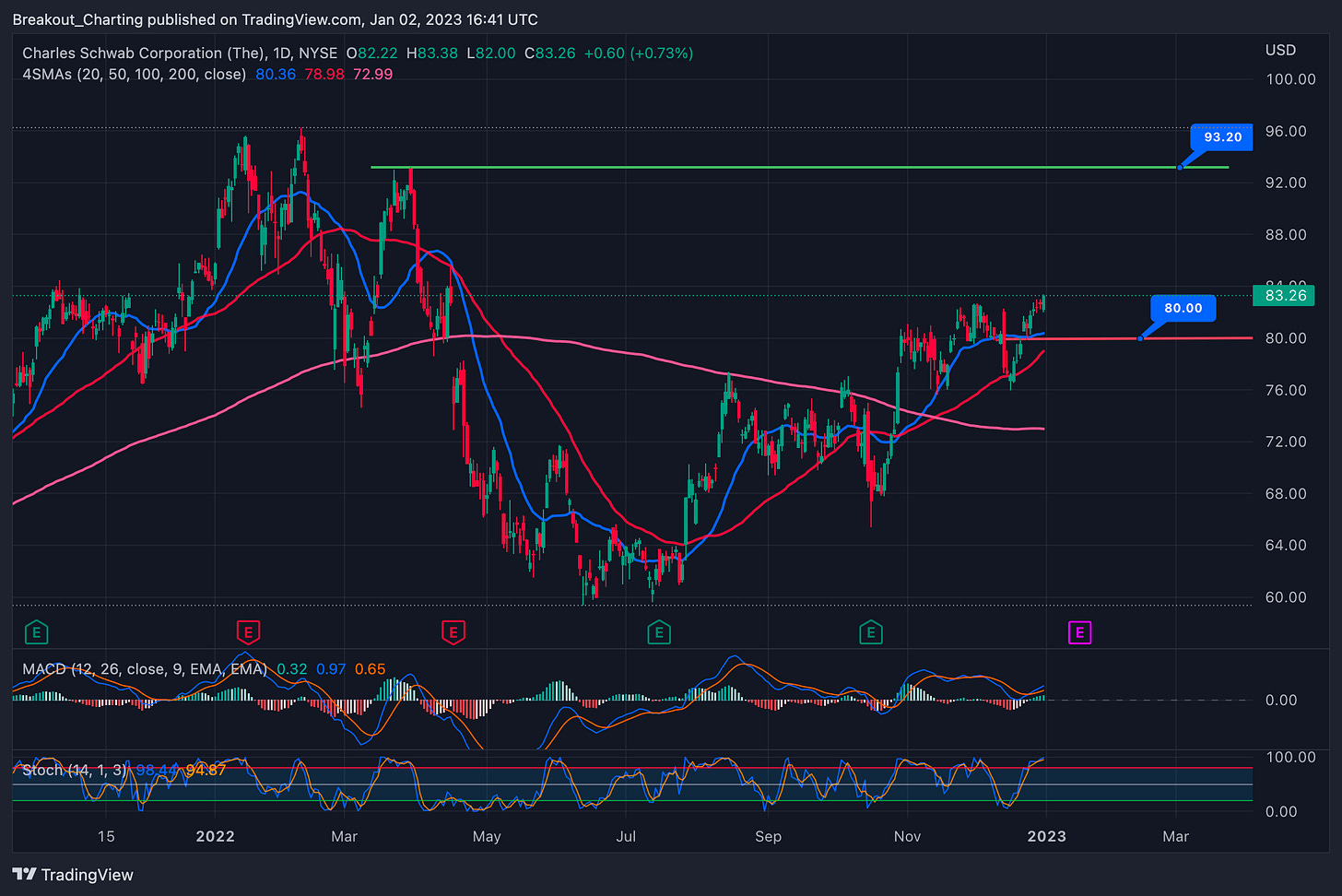 SCHW - Charles Schwab Corp: Good momentum and trend. Target: 93.20 Stop-Loss: 80
